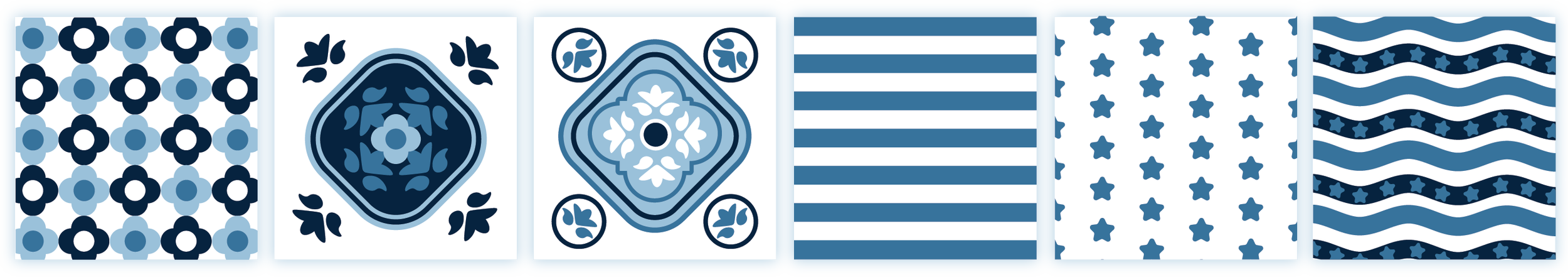 These tiles feature emoji-like characters designed to evoke both Portuguese American moods. Emojis are universal and feel relatable through all cultures. The mood tiles compliment the chat bubble tiles or can be used alone within the custom mosaics.