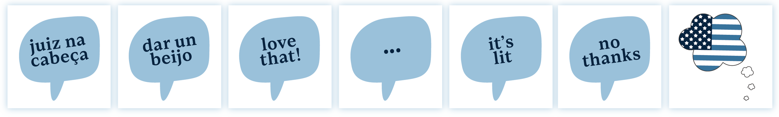 The chat bubble tiles feature popular sayings from both Portuguese and American cultures. These tiles compliment the emotion tiles or can be used alone in the mosaic.